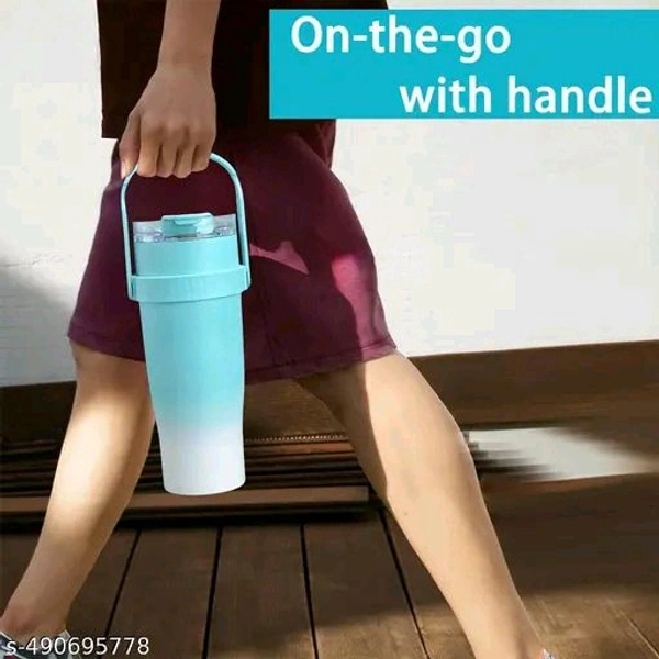 Name: 1200ml Stainless Steel Tumbler with Handle, Dual Lid, Drinking Straw | Hot and Cold Double Vacuum Insulated Flask | Fits Car Cup Holders |