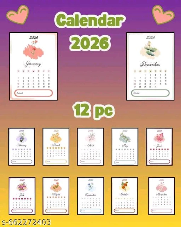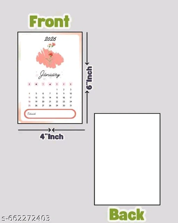 Organize your month in style with this charming mini desktop calendar for January 2026. Featuring a delicate floral design and a soft color palette, it adds a touch of aesthetic elegance to any workspace. The calendar comes complete with a sturdy, miniature wooden easel stand for easy display. A dedicated "Schedule" space at the bottom allows you to quickly jot down important notes or reminders for the month. Perfect for your desk, shelf, or bedside table and office etc.