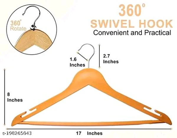 Plastic Wooden finish suit hangers featuring anti-rust chrome 360 degree swivel hook