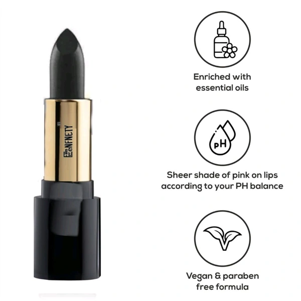 Color-changing lip balm - Eenfnety ™ Lipstick is formulated in such a way that it looks black but slowly changes color according to your lip's pH level, higher the pH level, deeper the color. It’s rightly said - There’s magic in madness!
