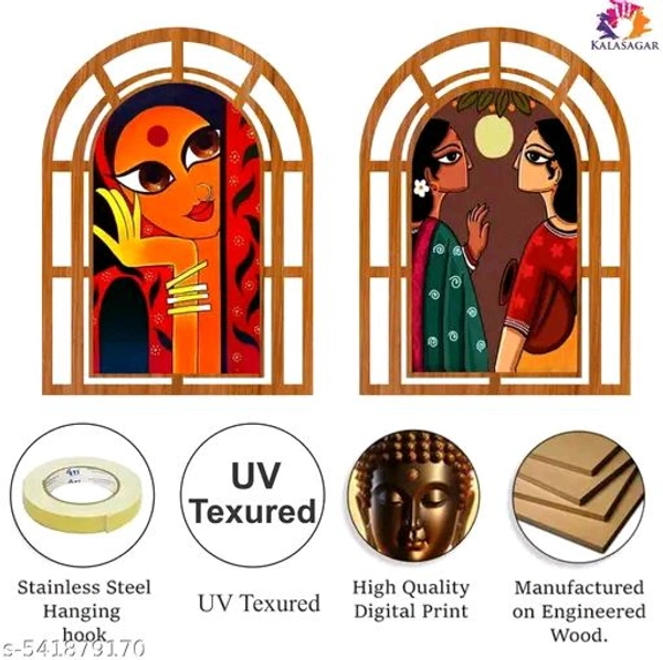 Name: Kalasagar Premium Jharokha Designer Painting MDF Wooden Wall Decor Hanging Panel for Home Decoration | Office | Gift | Wall Decor Hanging Items | Wall Art | Living Room | Bedroom | Pack of 2 Pieces