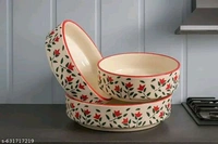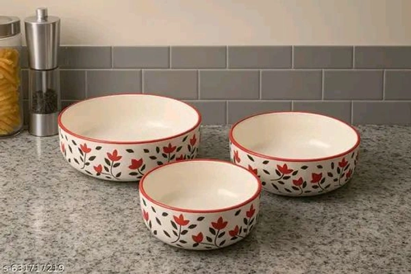 Name: Premium Ceramic Bowl Set of 3 | Multi-Purpose Serving Bowls | Microwave & Dishwasher Safe | Ideal for Snacks, Curry, Salad & Kitchen Use
