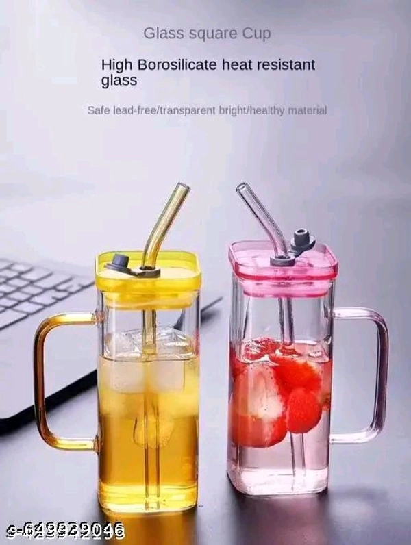 ***Cute Cups with Lid and Straw:-This glass cup is designed with a cute bow. Cute and sweet, this glass cup is suitable for all kinds of cold and hot drinks. Whether it's coffee, milk, sparkling water, or ice cream, this cup will add a touch of sweetness to them.