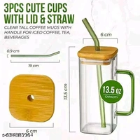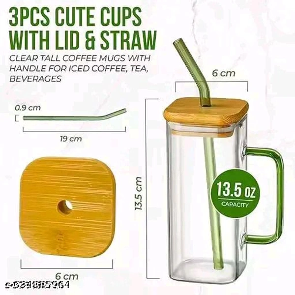 ***Cute Cups with Lid and Straw:-This glass cup is designed with a cute bow. Cute and sweet, this glass cup is suitable for all kinds of cold and hot drinks. Whether it's coffee, milk, sparkling water, or ice cream, this cup will add a touch of sweetness to them.